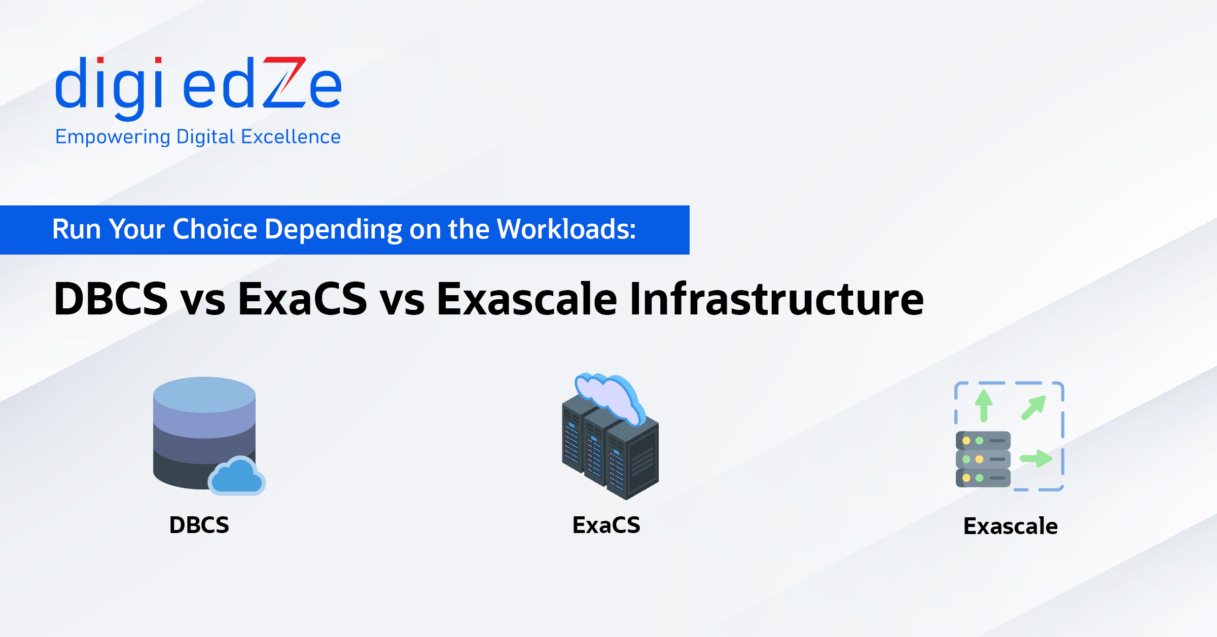 Oracle database cloud portfolio remains uncompromised for businesses with different cost models, operational profiles, and strategic trajectories. Choosing one of them requires a deep dive assessment based on your workloads. The three platforms that Oracle offers are Database Cloud Service (DBCS), Exadata Cloud Service (ExaCS), and newest evolution – Exadata Database service on Exascale Infrastructure. Each has its own advantages on the spectrum of cost efficiency, scalability, and enterprise resilience.